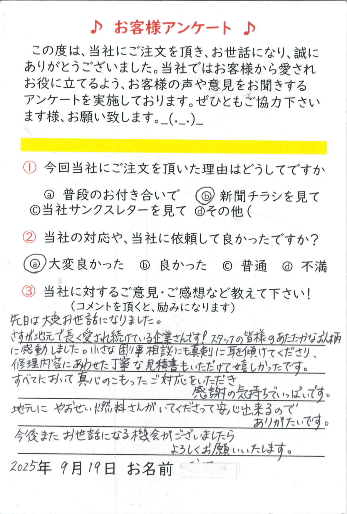 2025年9月 ご近所の皆さまの住まいのお困り事 私たちに解決させて下さい!