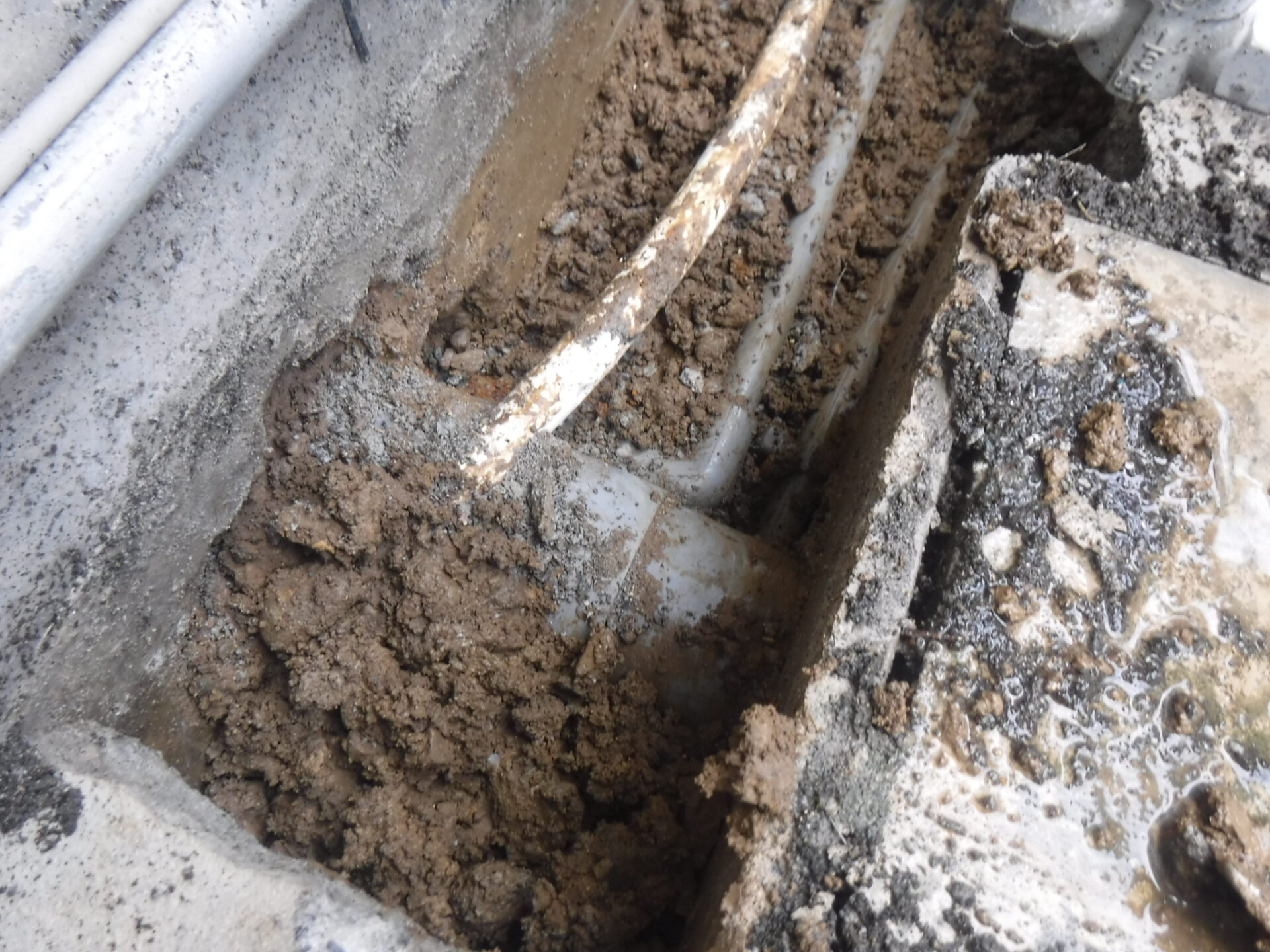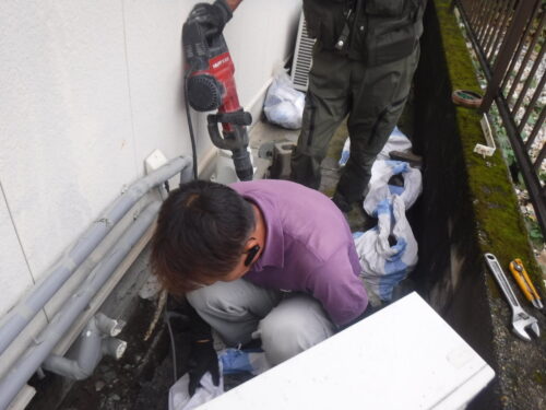 浴室の外には給湯器があり、そこも同様に音がするので、コンクリートを斫り、