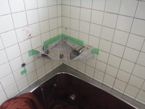 タイル張りのお風呂で床下にもぐることも出来ないので、浴室内へ新たに配管を