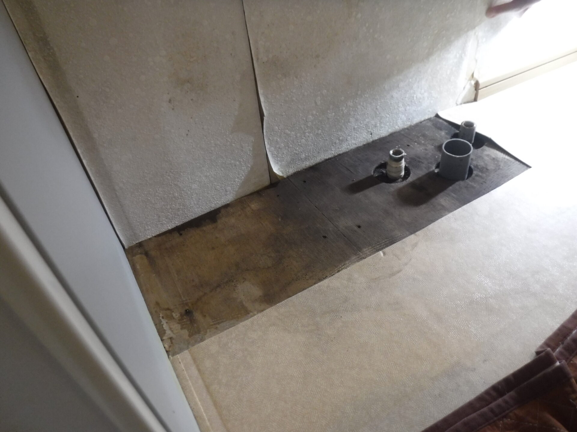 排水パイプを組み直してもダメで、洗面台の底面もボロボロだったので、