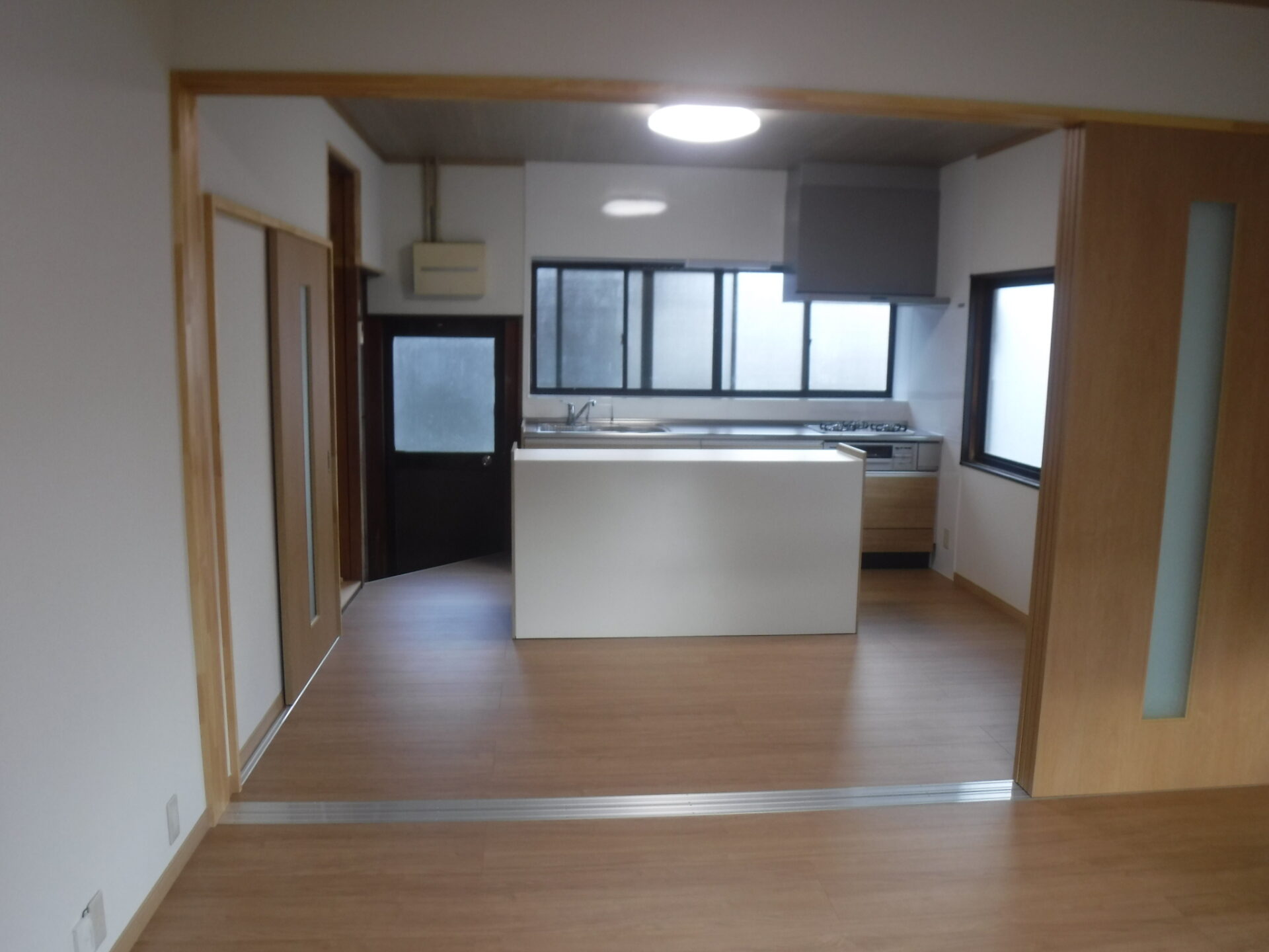 今までは、キッチンとリビングとの間に仕切り壁がありましたが、壁面を