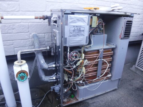 いつもお世話になっているF様の給湯器取替えです。既設給湯器のリモコンにエラー