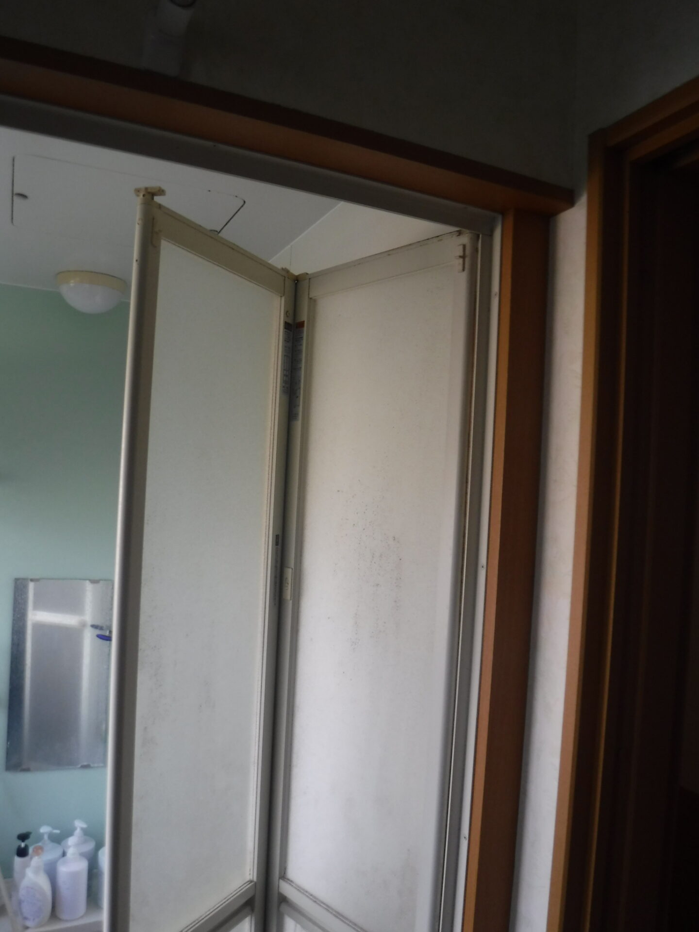 いつもいろいろとお世話になっているK様宅のユニットバス用折れ戸の取替えを