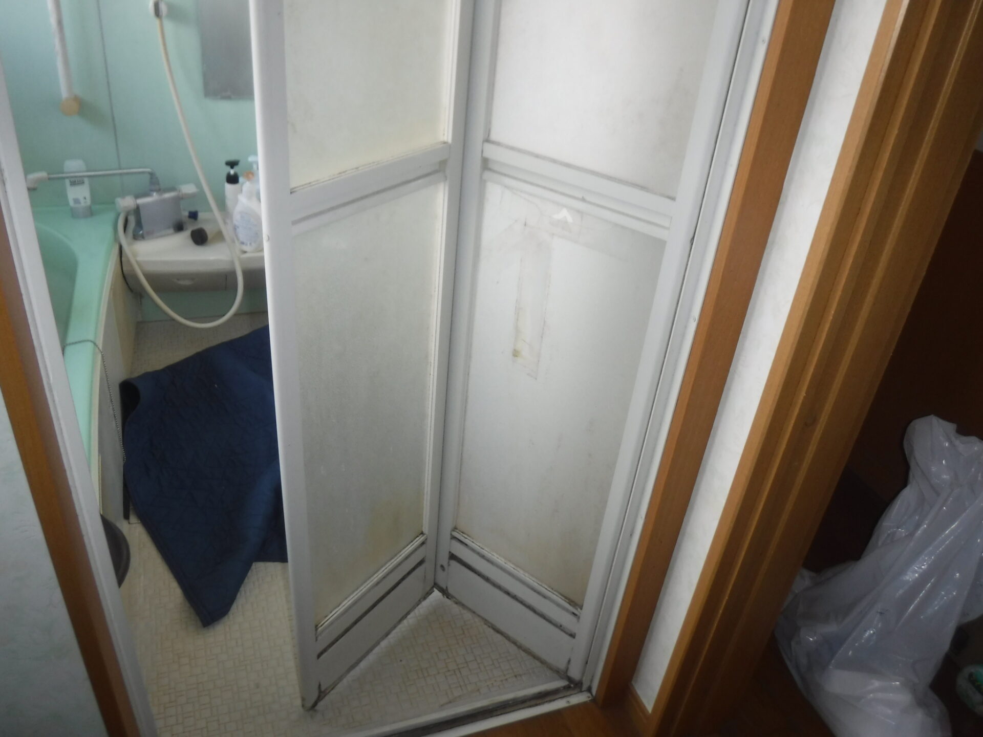 いつもいろいろとお世話になっているK様宅のユニットバス用折れ戸の取替えを