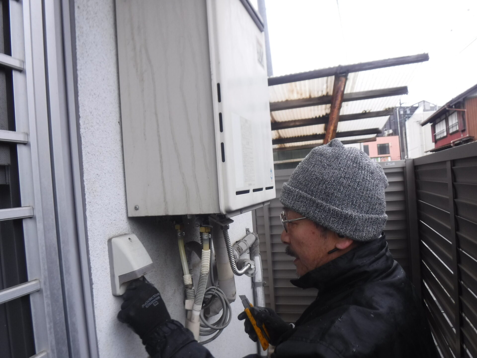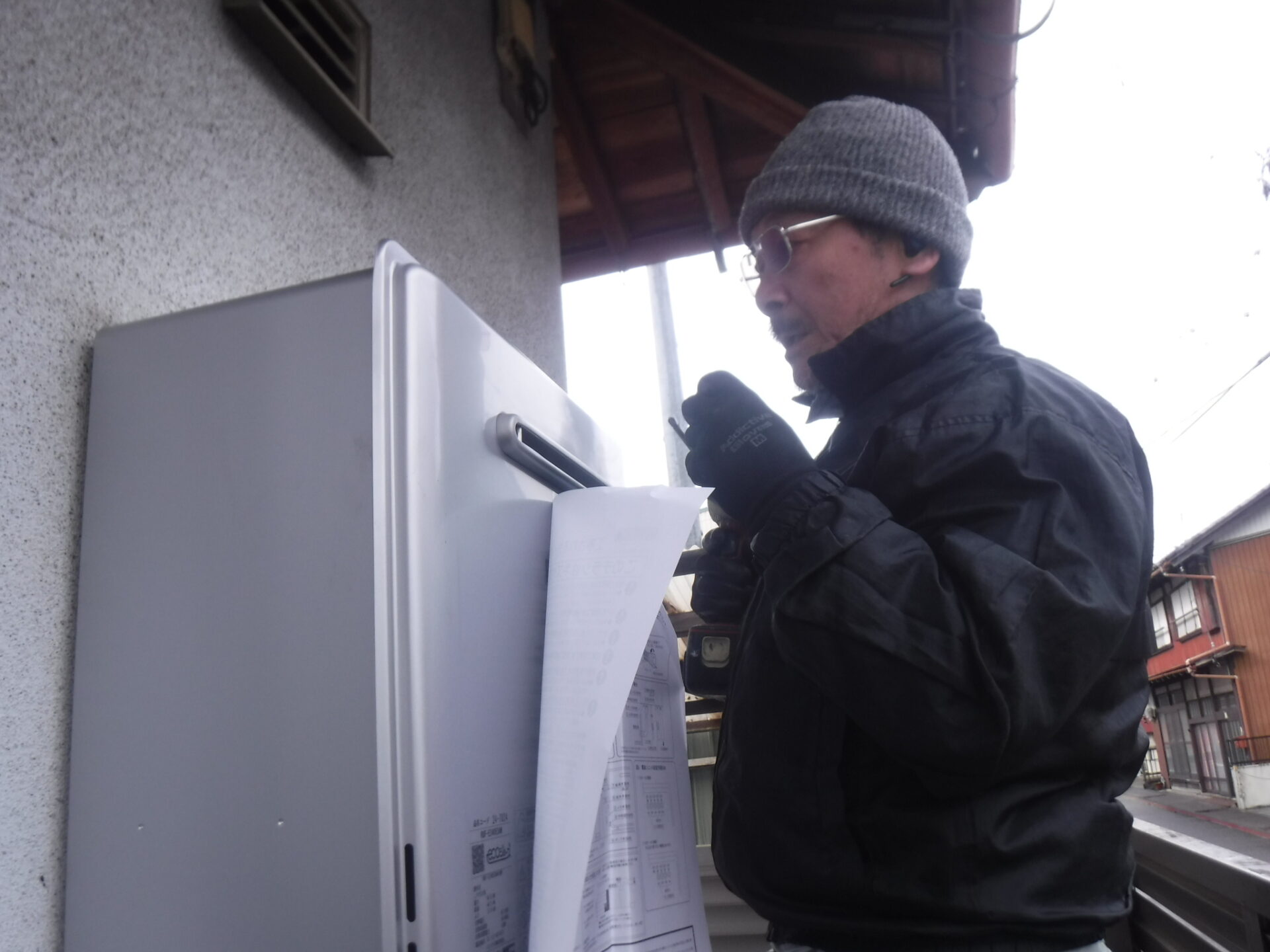 いつもお世話になり、また垂井で大人気の料理店『Iっしょうさん』のK也君宅の給湯器の