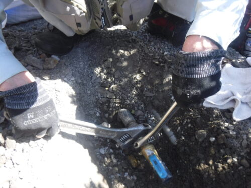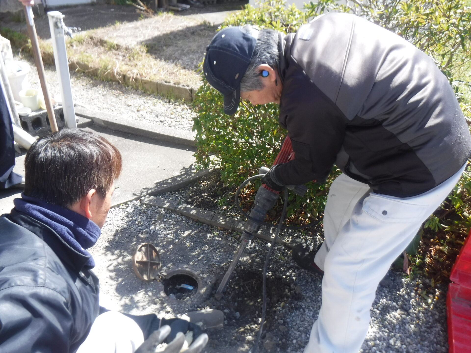 いつもお世話になっているB様から、水道配管の水漏れ及び給水コックの取替えのご注文を頂きました。地面が堅かったので、ヒルティのはつり機で配管周辺を掘り給水管をとり出し、完了しました。B様にはここ最近いろいろお声をかけて頂き