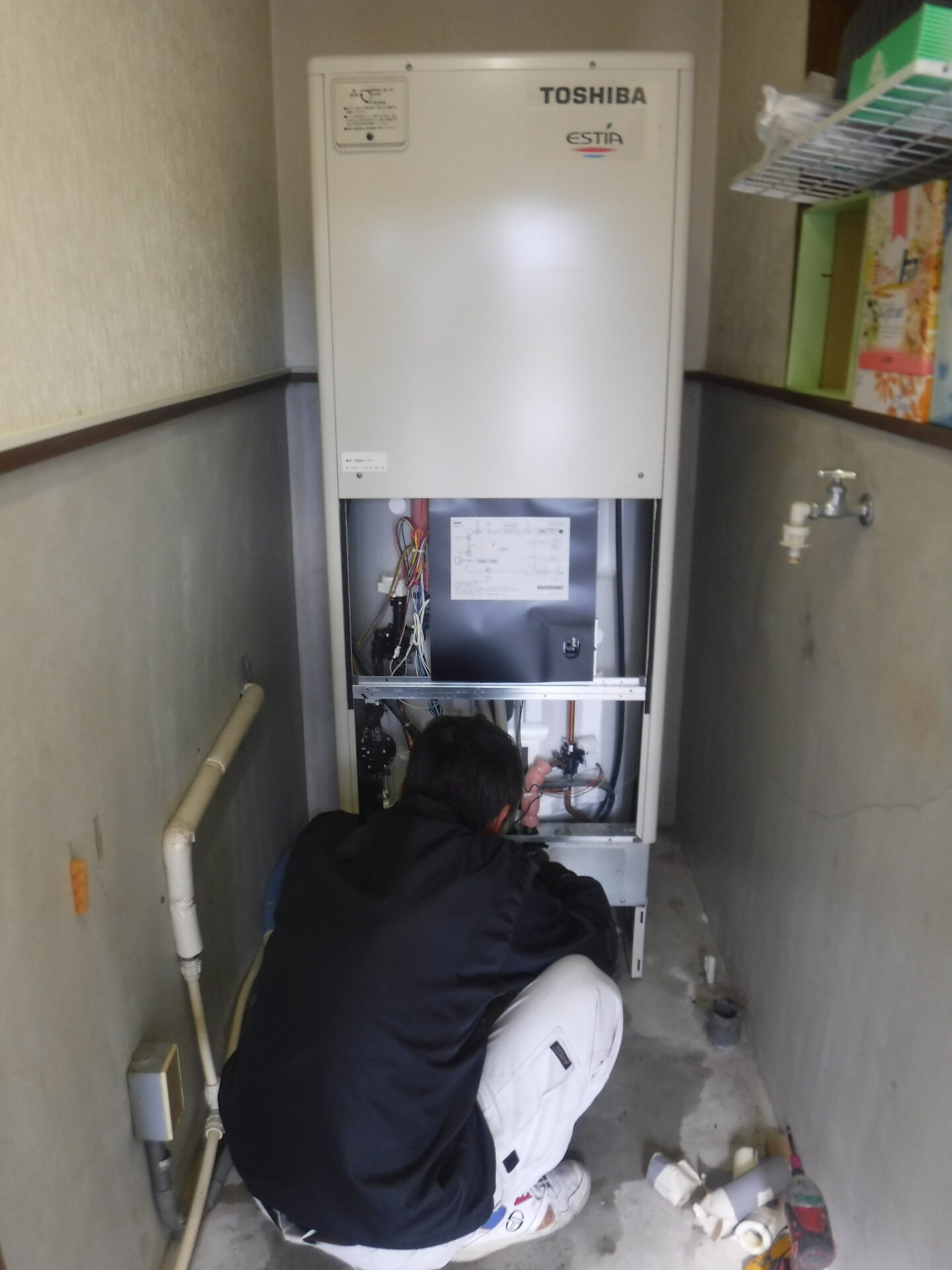 4/1 垂井町栗原 N様 エコキュート東芝HWH-F372CTを 長府井戸水対応EHP-3705A-I-E2へ取替え(^^♪