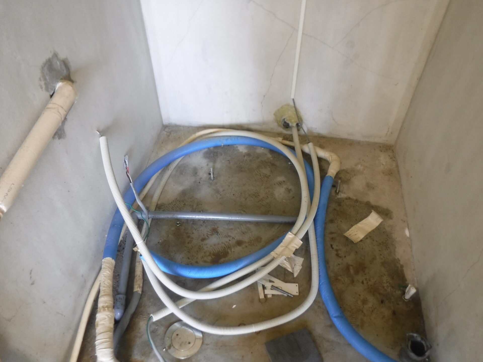 以前トイレ修理や台所蛇口取替えをさせて頂いたN様から、エコキュートから水漏れしているので見てほしいとのご連絡がありました。確認しに行くと、配管からの水漏れではなく、本体熱交換器からと、銅配管からの二か所水漏れしていました。